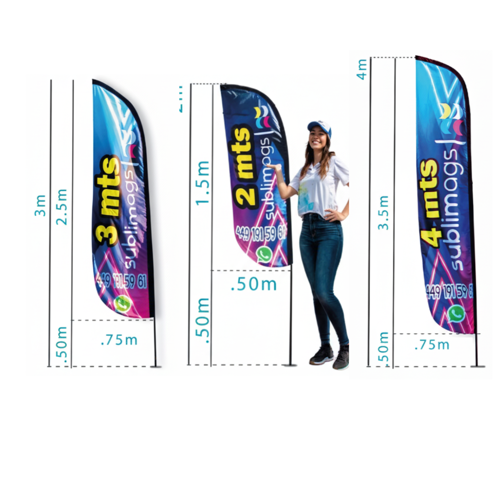 Todas las banderas incluyen estructura de metal armable para fácil montaje, cinta reflectante que brilla en la oscuridad, incluyen base metálica, así como sacos de arena de soporte o si lo prefieres podemos colocar estaca metálica en el pavimento para mayor adherencia